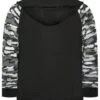 330 GSM 65% cotton, 35% polyesterHood with drawstringsContrast camo print long sleevesFull zipTwo side pocketsMade from a loopback cotton fabric3XL Length from (approx): 84cm/33″Machine washableMade In Pakistan