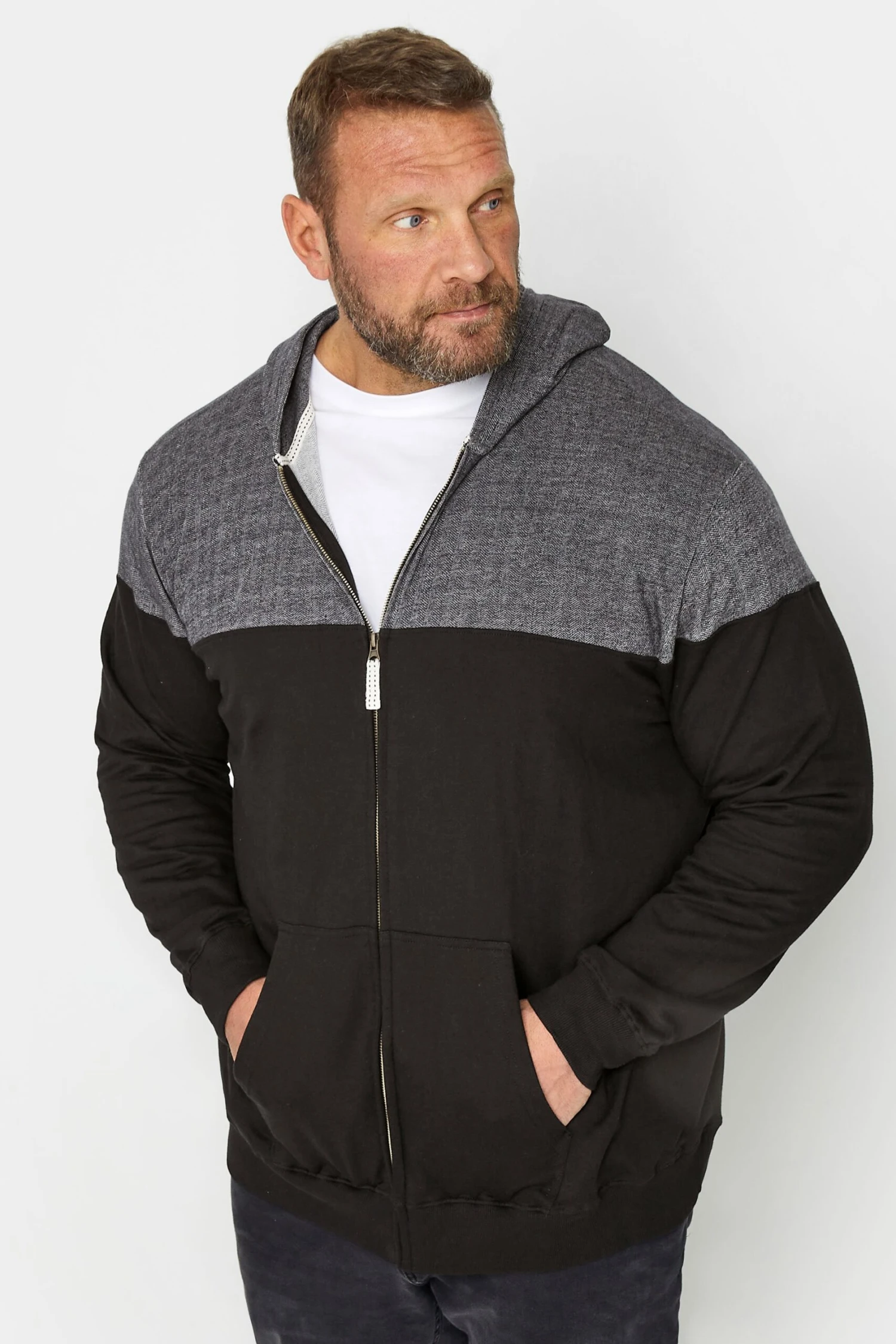 BadRhino Big & Tall Black Colourblock Zip Through Sweatshirt