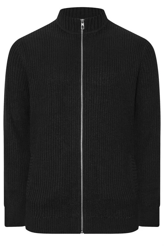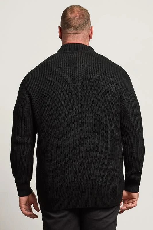 BadRhino Big & Tall Black Ribbed Zip Through Knitted Jumper