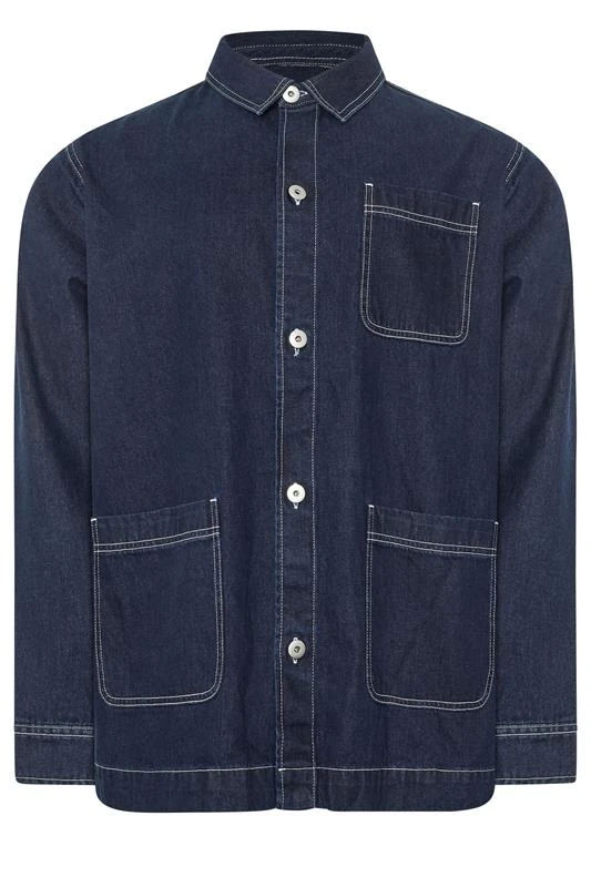 Tonal contrast stitchingSingle chest pocketButton cuffsLong sleevesClassic collarButton through fasteningsThree front pocketsMade from a comfortable denim fabric100% polyester3XL length from (approx): 86cm/34″Machine washableMade In PakistanModel is 6’7″/200cm and size UK 3XL/EU 3XL