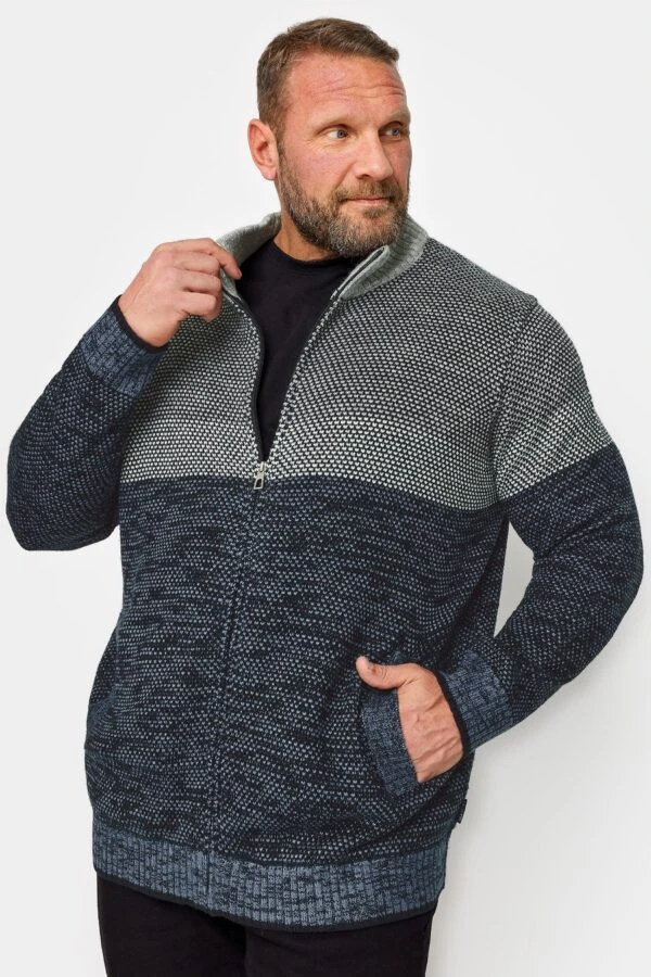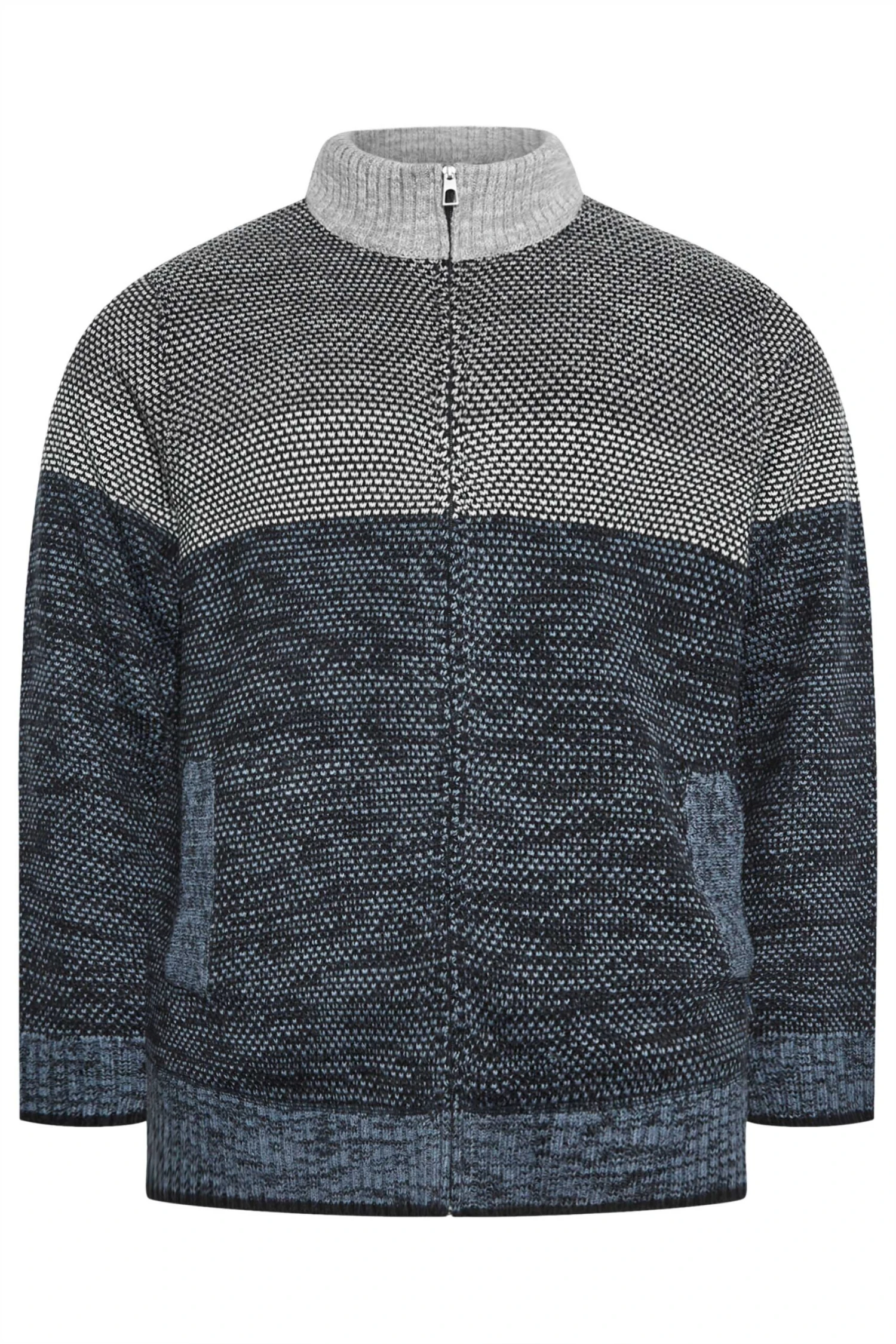 BadRhino Big & Tall Blue Full Zip Fleece Lined Knitted Jumper