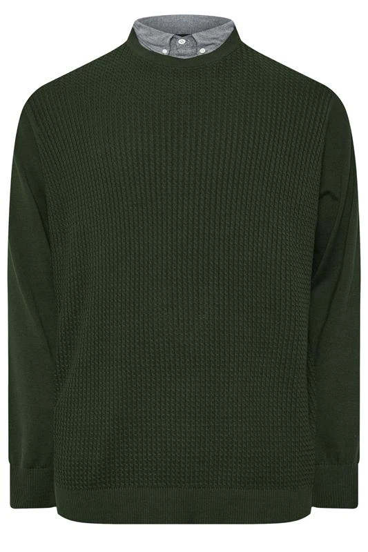 BadRhino Big & Tall Dark Green Cable Knit Mock Shirt Jumper