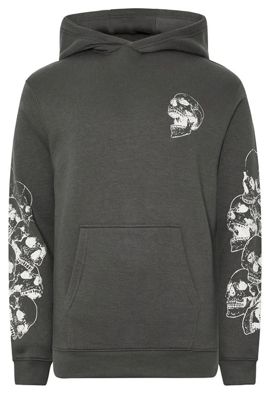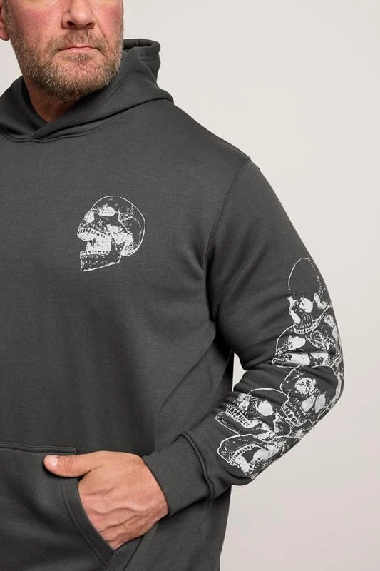 BadRhino Big & Tall Ebony Grey Skull Print Hoodie