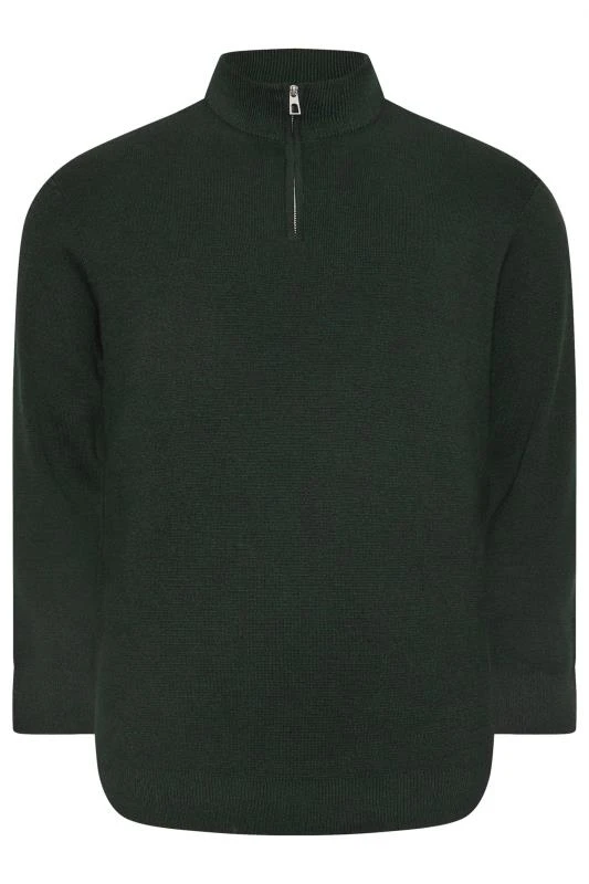 BadRhino Big & Tall Green Milano Quarter Zip Knitted Jumper