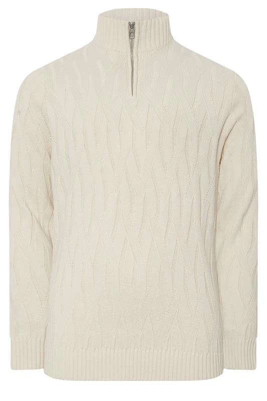 BadRhino Big & Tall Marshmallow Cream Cable Knit Quarter Zip Jumper