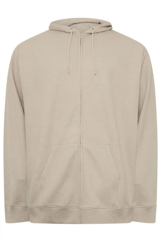 BadRhino Big & Tall Natural Brown Diamond Quilted Zip Through Hoodie
