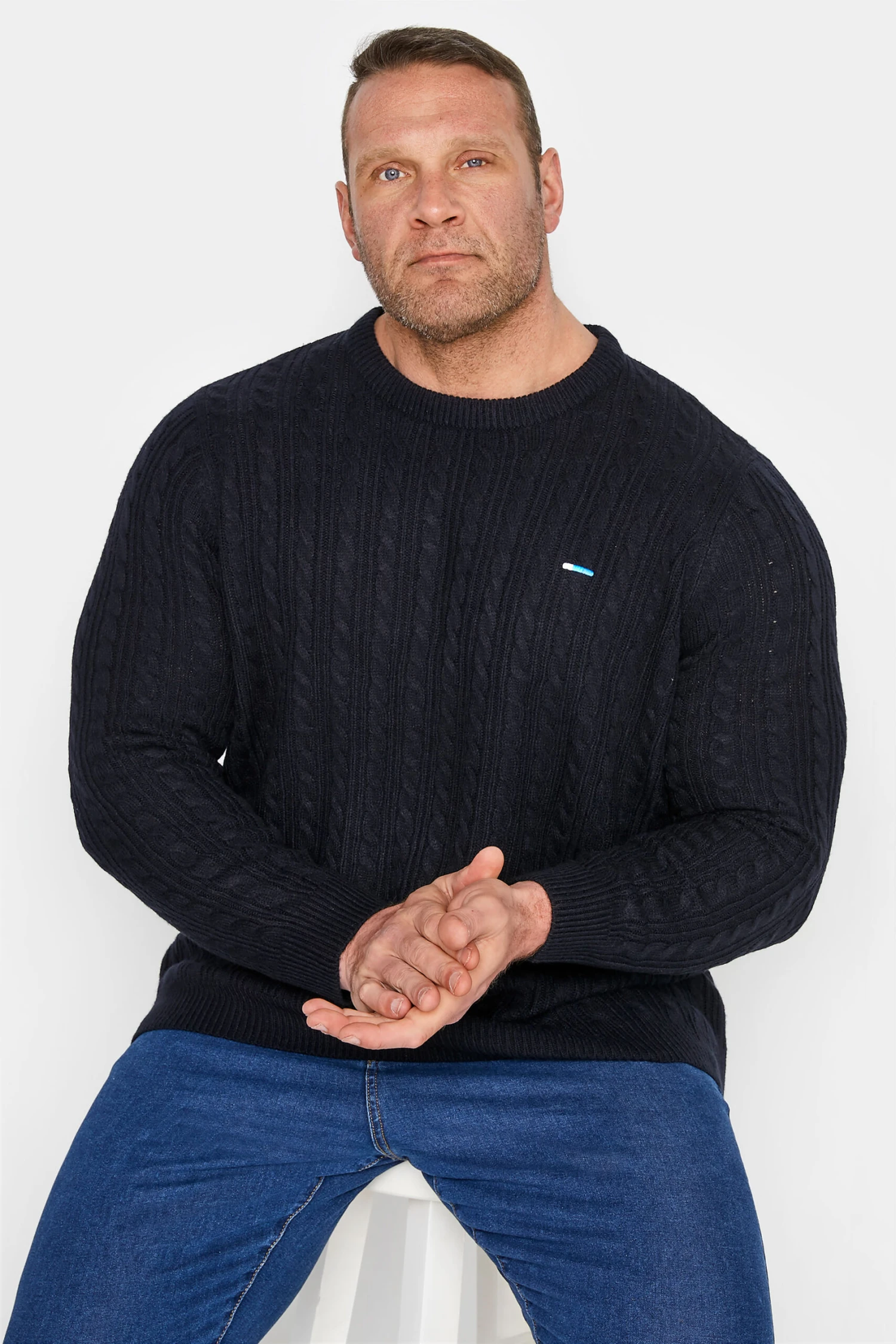 BadRhino Big & Tall Navy Blue Cable Knitted Jumper
