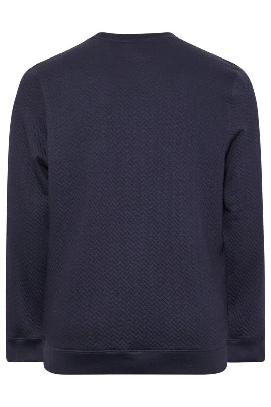 BadRhino Big & Tall Navy Blue Chevron Quilted Crew Neck Sweatshirt