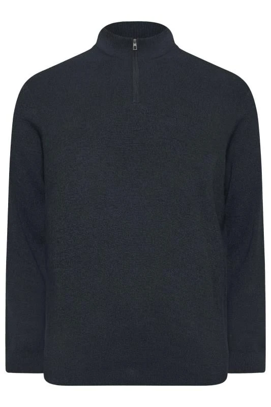 BadRhino Big & Tall Navy Blue Milano Quarter Zip Knit Jumper
