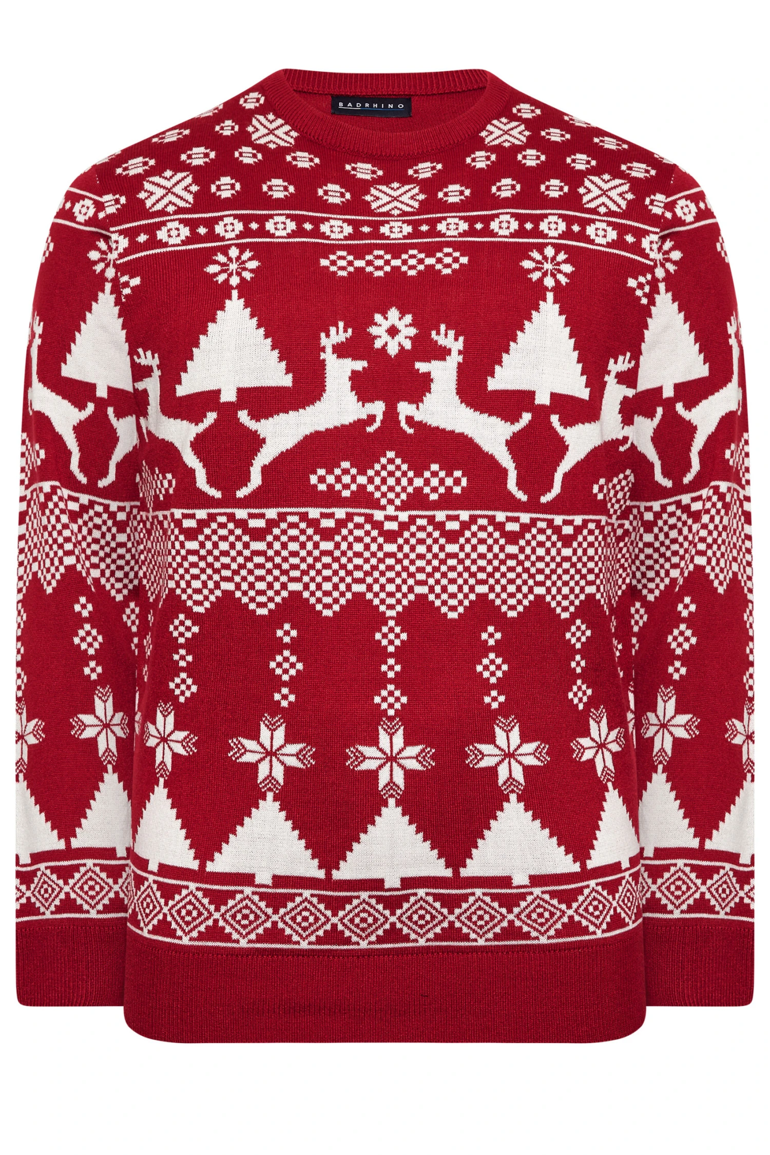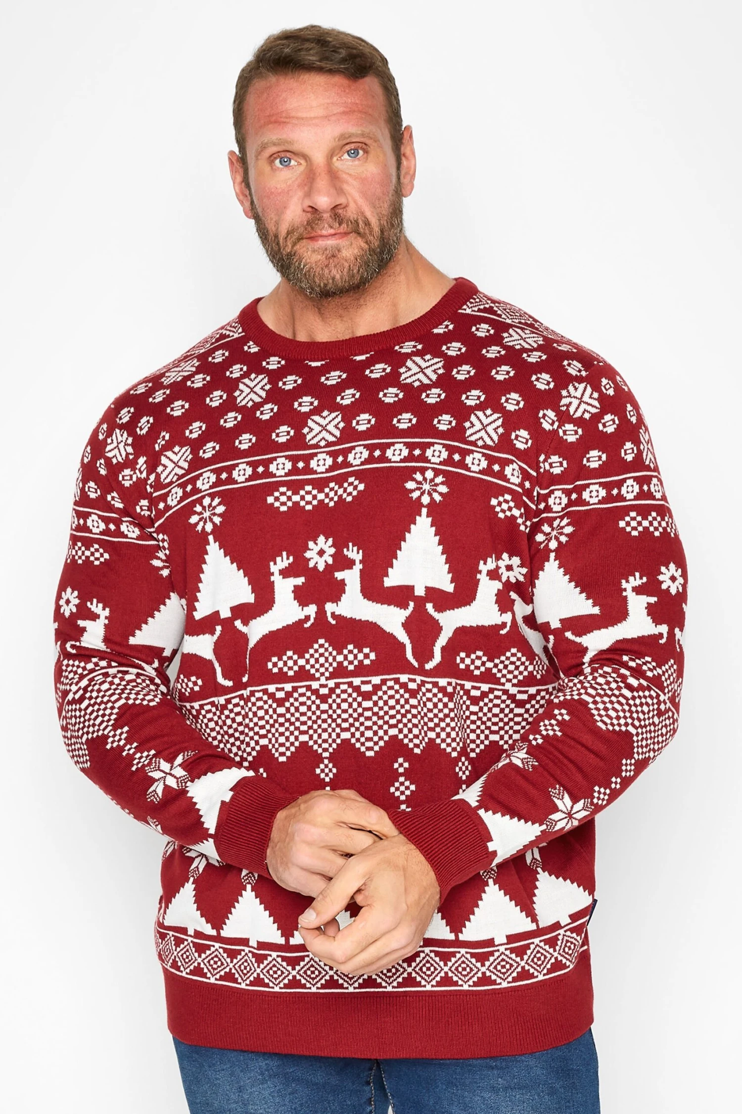 BadRhino Big & Tall Red Reindeer Christmas Knitted Jumper
