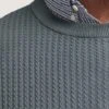 BadRhino Big & Tall Storm Blue Cable Knit Mock Shirt Jumper
