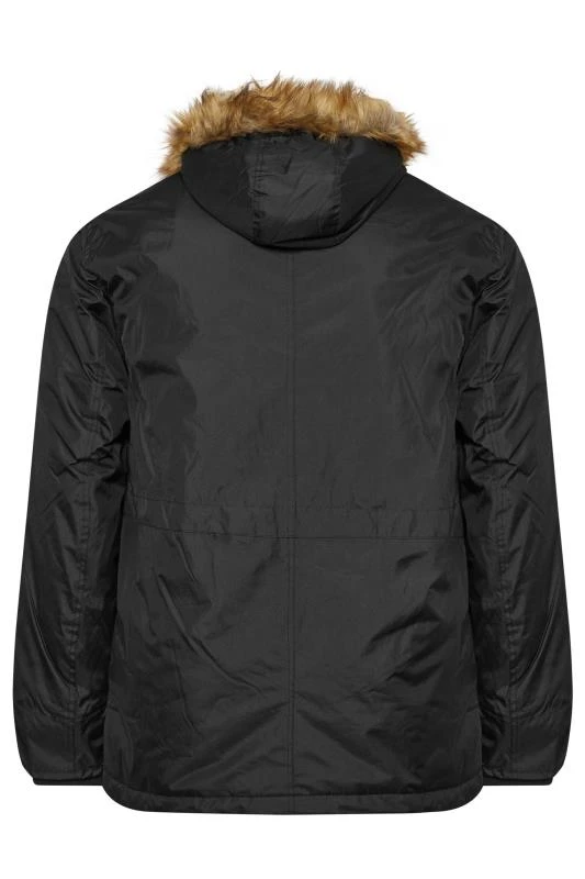 D555 Big & Tall Black Parka Style Hooded Jacket
