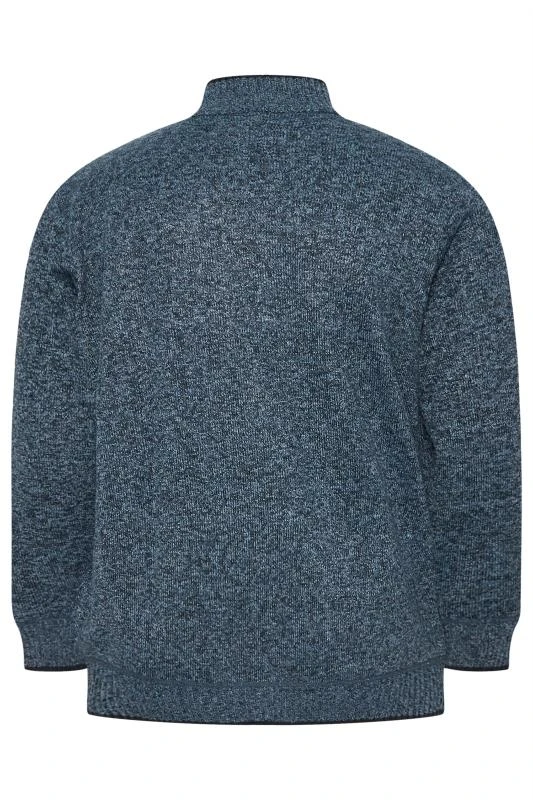 D555 Big & Tall Blue Marl Zip Through Cable Knit Jumper