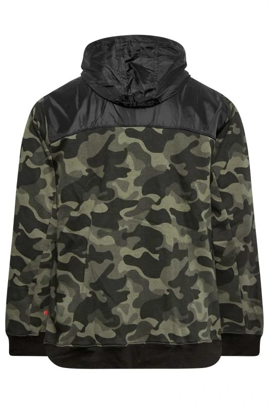 D555 Big & Tall Khaki Green Camo Zip Through Hoodie