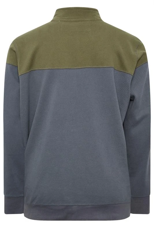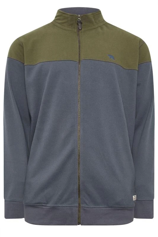 D555 Big & Tall Khaki Green & Grey Zip Through Embroidered Logo Fleece