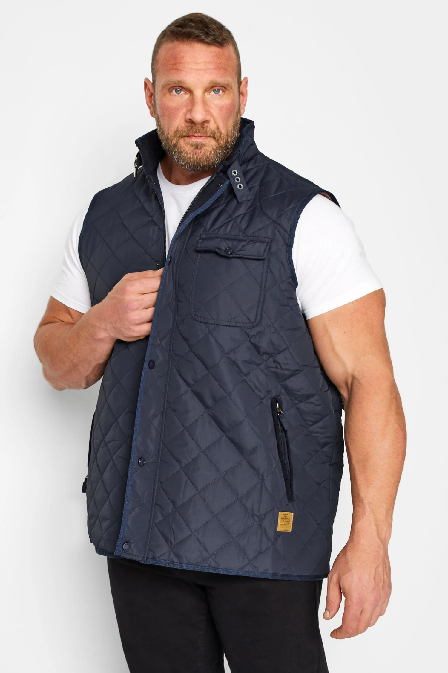 D555 Big & Tall Navy Blue Corduroy Trim Quilted Gilet