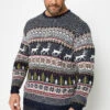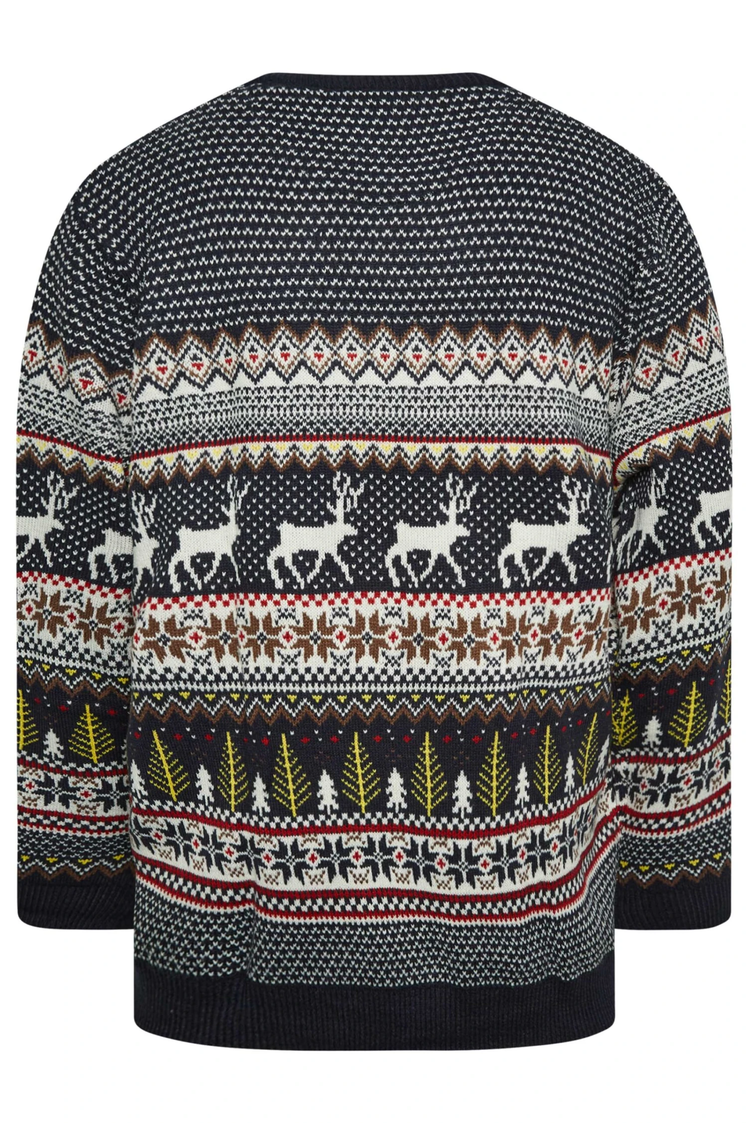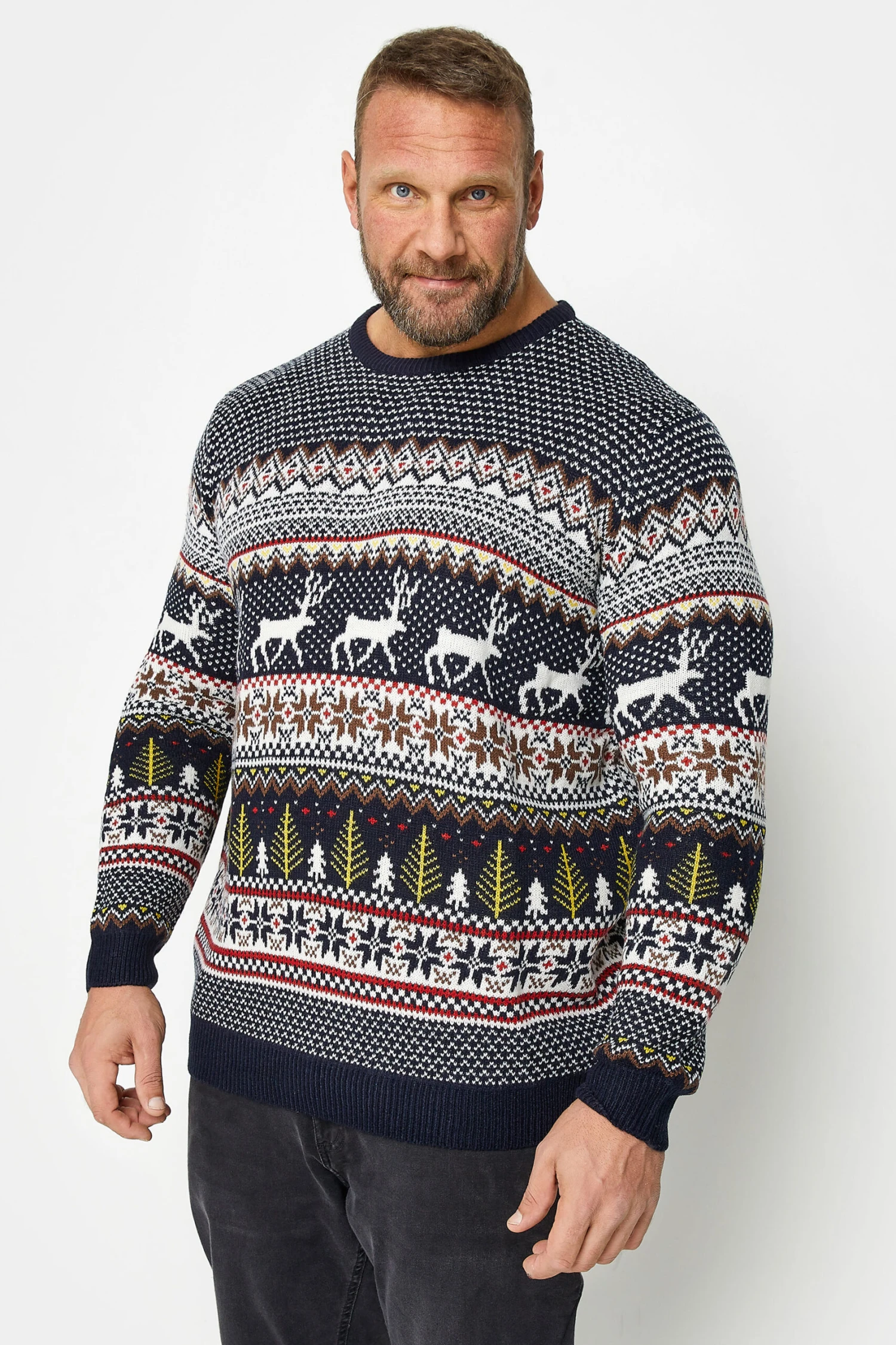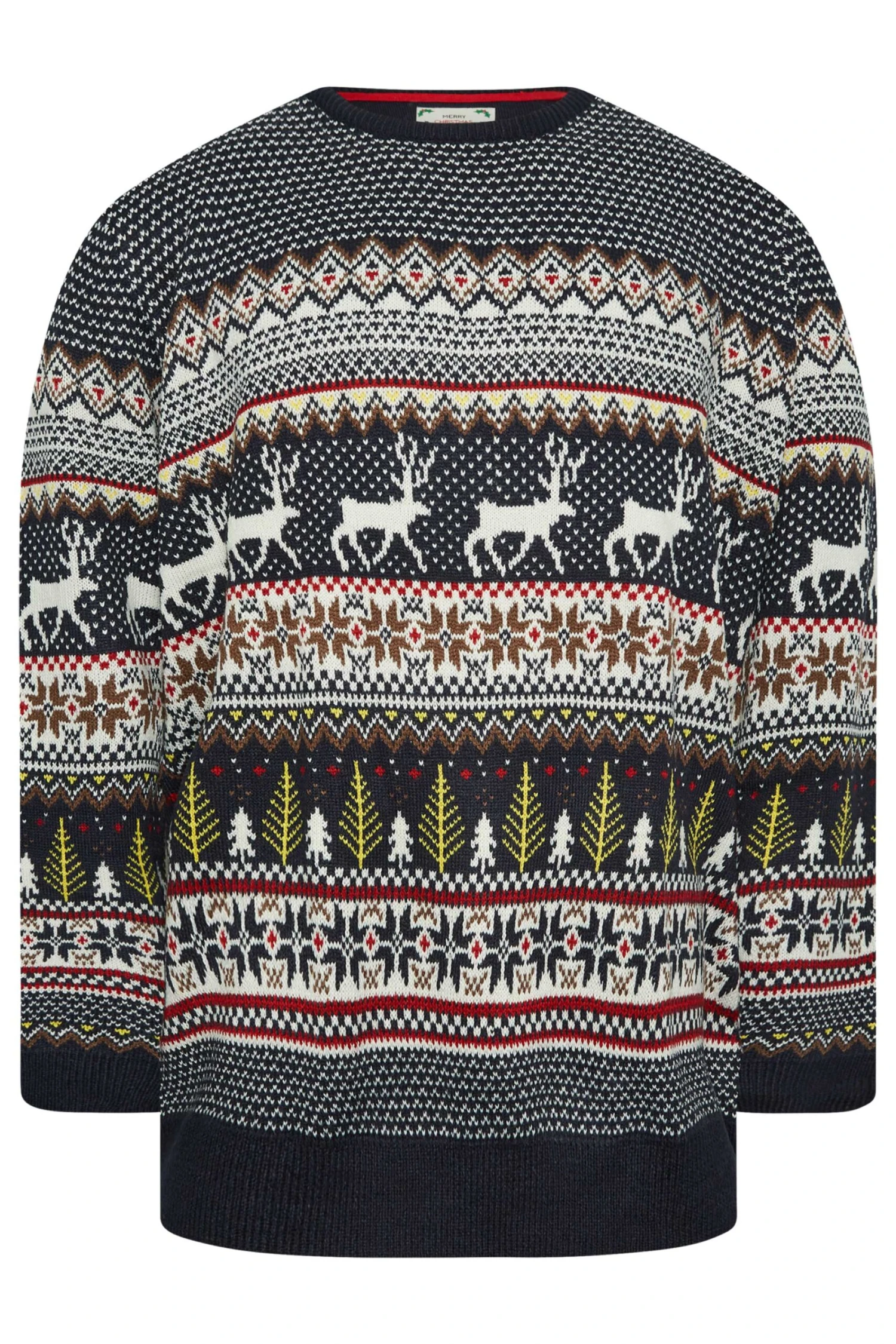 D555 Big & Tall Navy Blue Crew Neck Fairisle Christmas Jumper