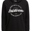 Update your hoodie collection with this new one from Jack & Jones. Constructed from a cotton blend, it features long sleeves with ribbed cuffs and hem, a hood with an adjustable drawstring, and a printed logo design. Pair with jeans and trainers.