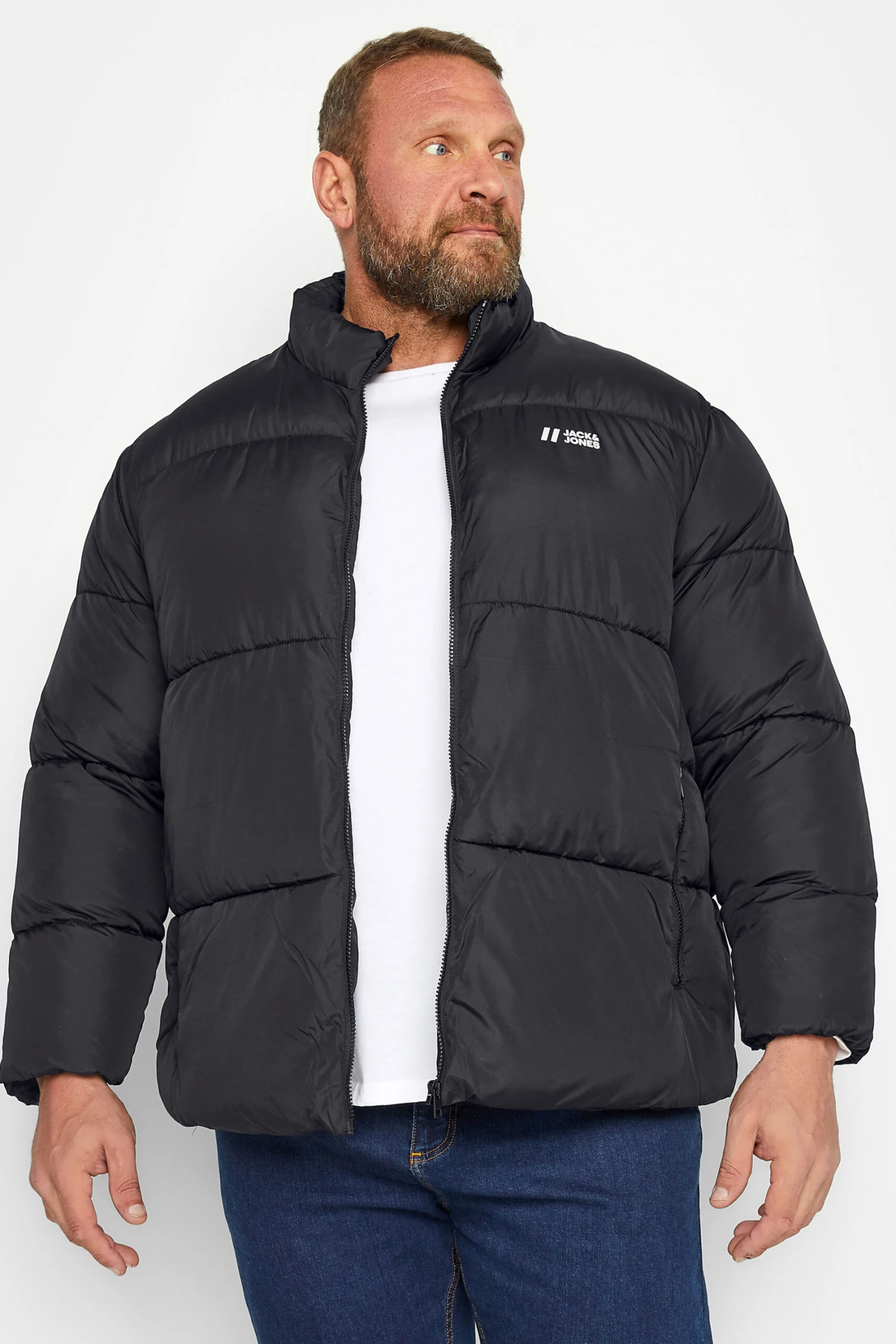JACK & JONES Big & Tall Black Logo Puffer Jacket