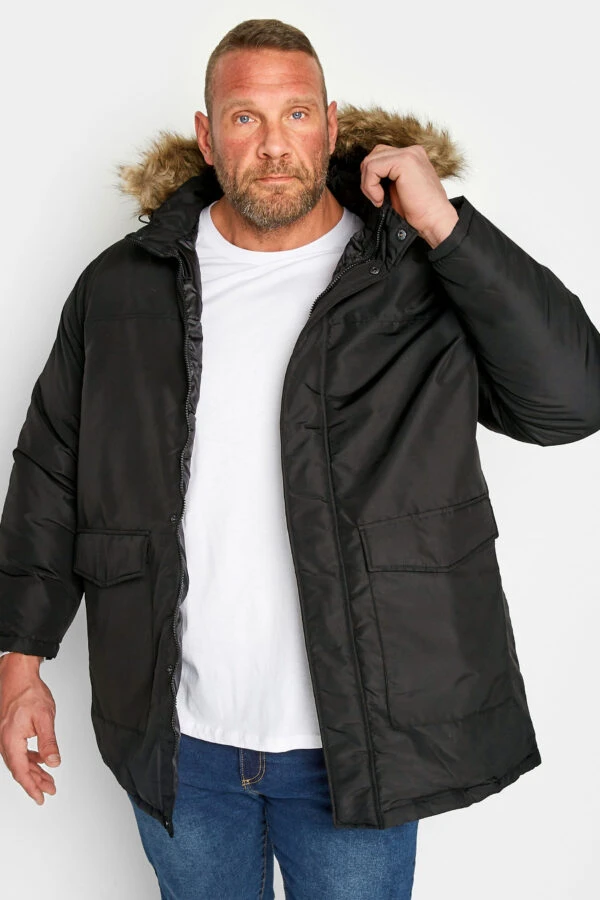 JACK & JONES Big & Tall Black Padded Parka Coat