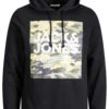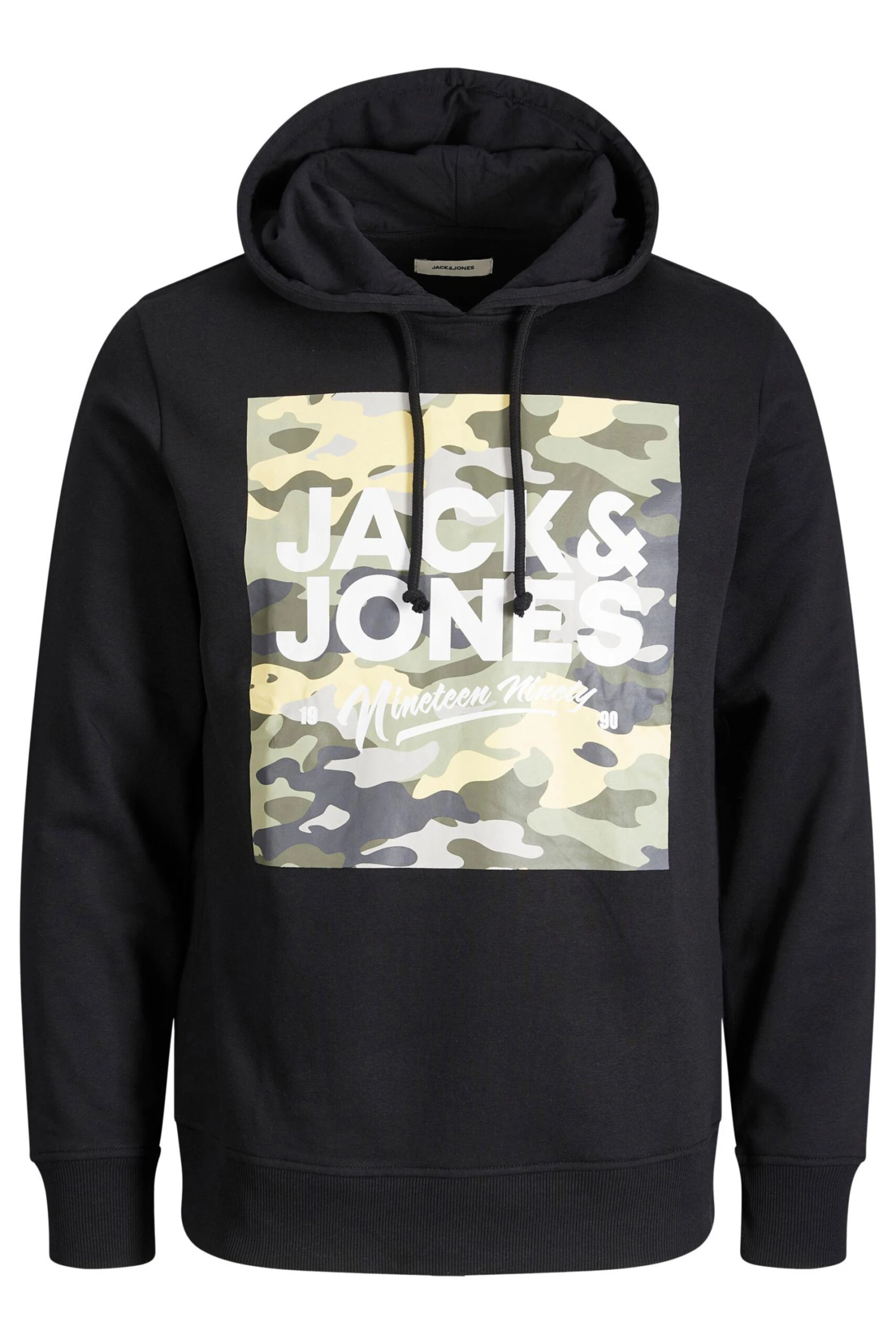 This Jack & Jones hoodie is the ultimate everyday basic. Made from comfortable jersey fabric, it features a hood with adjustable drawstrings and long sleeves, finished with a camo logo print. Pair with joggers and trainers for relaxed vibes.
