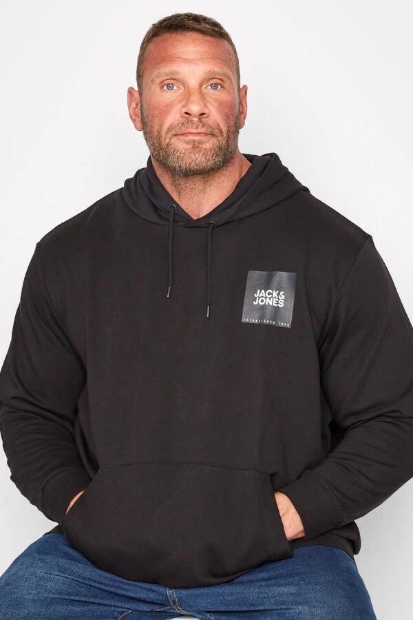 JACK & JONES Big & Tall Black Printed Logo Hoodie