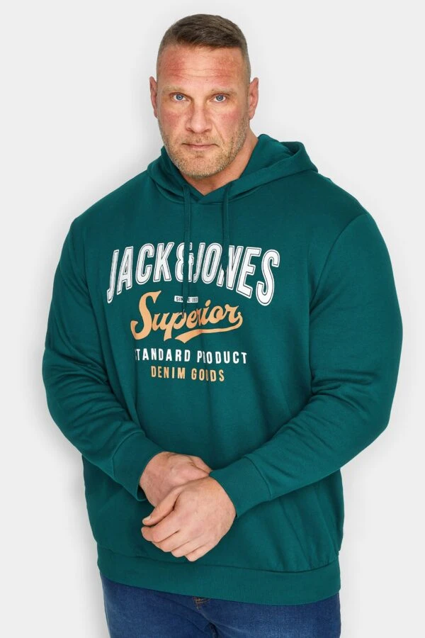 JACK & JONES Big & Tall Dark Green Printed Hoodie