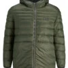 JACK & JONES Big & Tall Khaki Green Hooded Puffer Coat