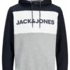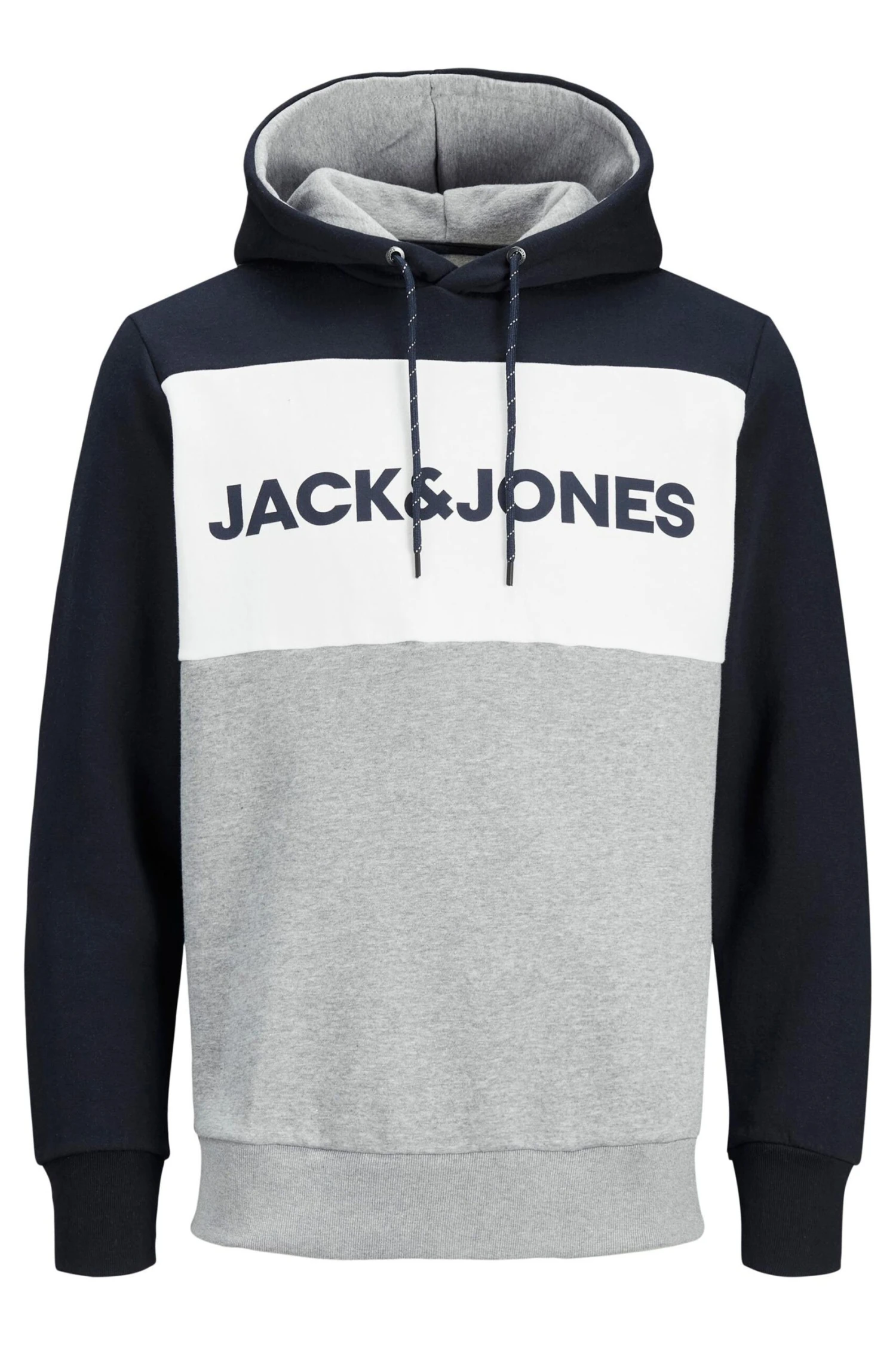 JACK & JONES Big & Tall Navy Blue & Grey Colour Block Logo Hoodie