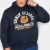 JACK & JONES Big & Tall Navy Blue Printed Hoodie