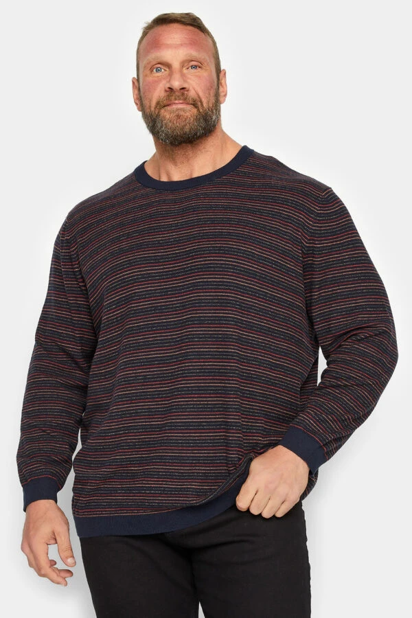 JACK & JONES Big & Tall Navy Blue Striped Knitted Jumper