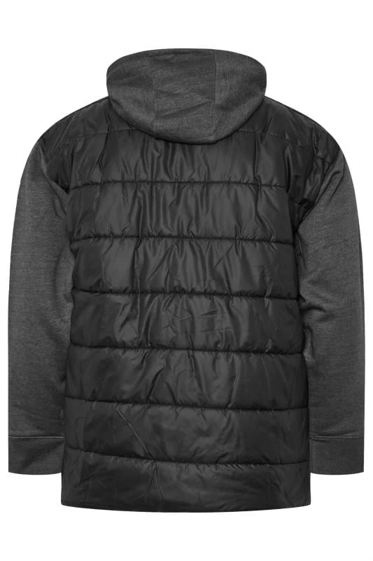 KAM Big & Tall Black Quilted Jersey Sleeve Hoodie