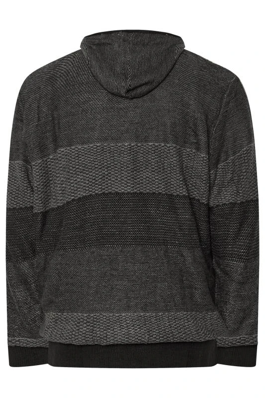 KAM Big & Tall Charcoal Grey Sherpa Stripe Hoodie