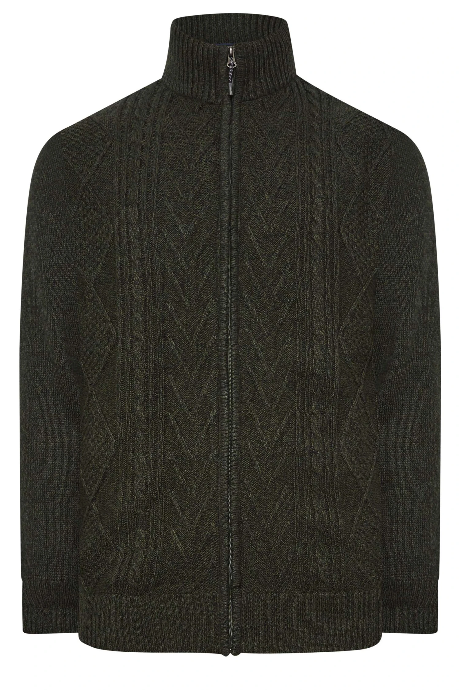 KAM Big & Tall Green Cable Knit Lined Cardigan