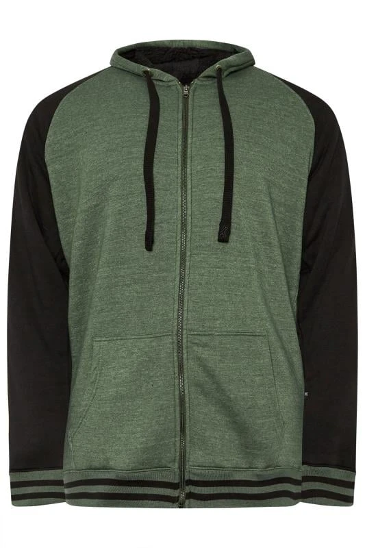 KAM Big & Tall Khaki Green Sherpa Raglan Sleeve Zip Through Hoodie