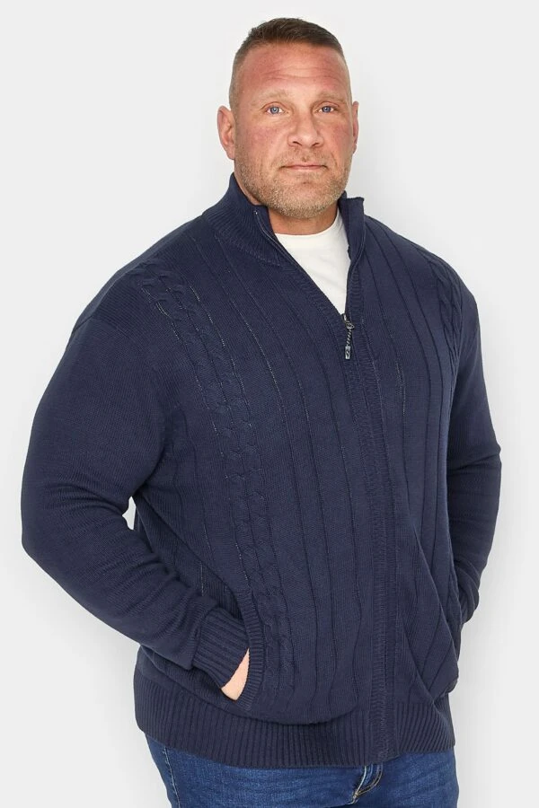 KAM Big & Tall Navy Blue Cable Knit Cardigan