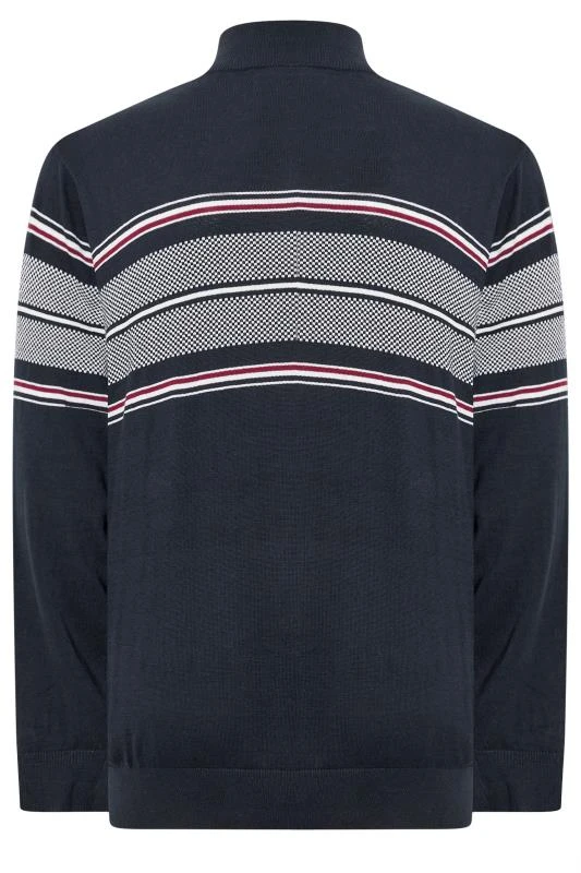 KAM Big & Tall Navy Blue Quarter Zip Stripe Knit Jumper