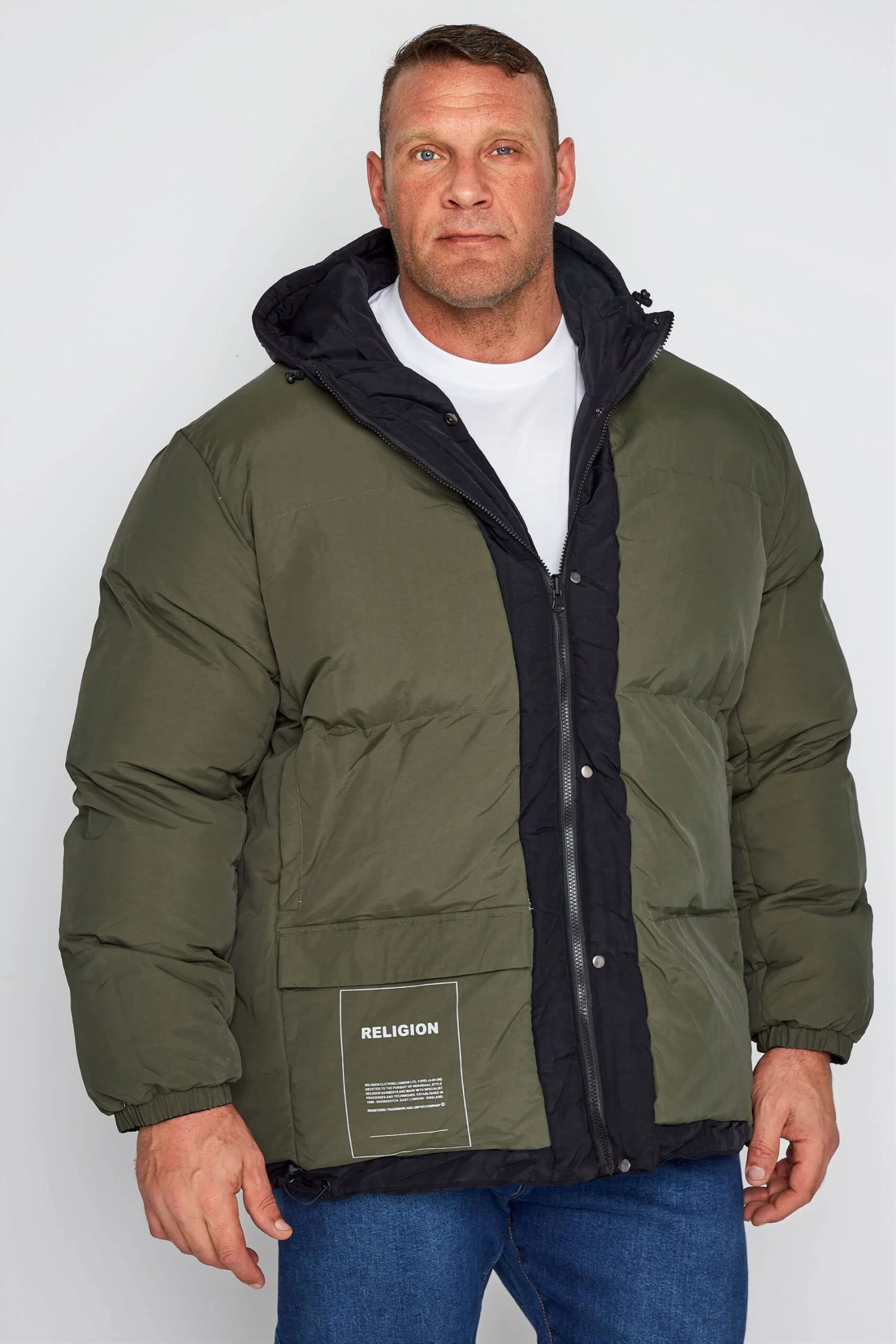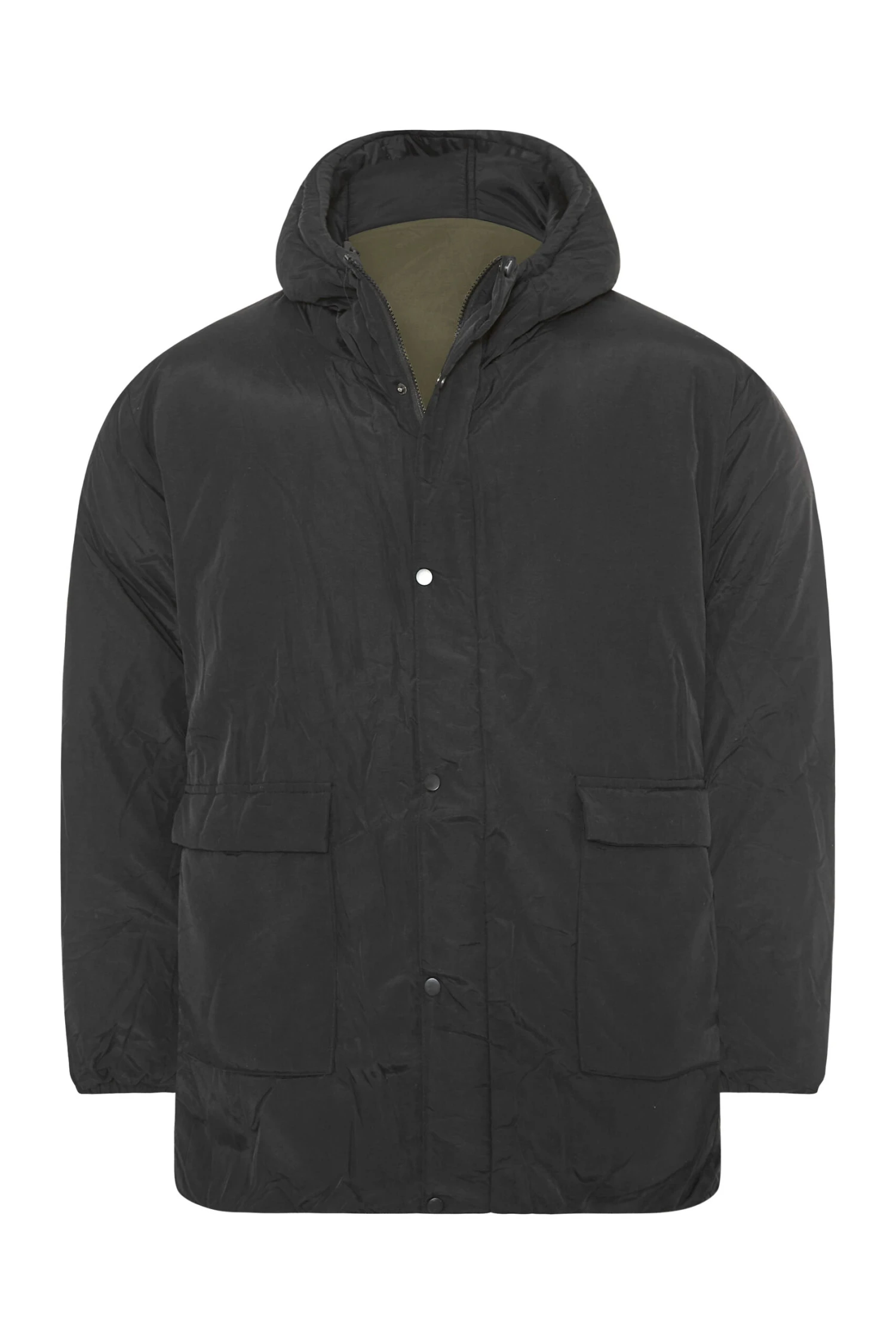 RELIGION Big & Tall Black & Khaki Green Reversible Parka Coat