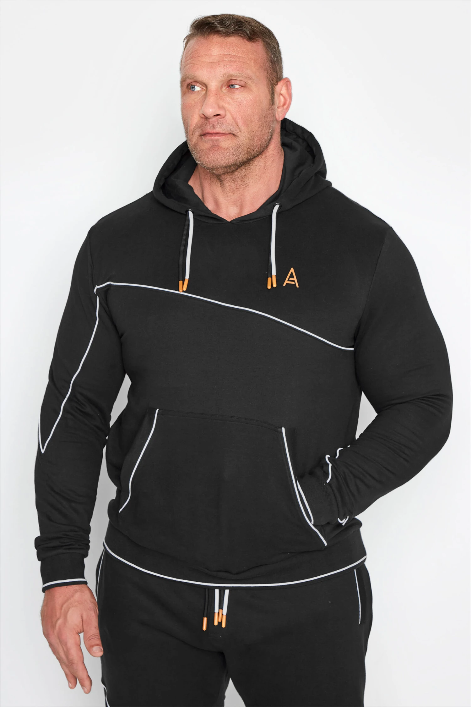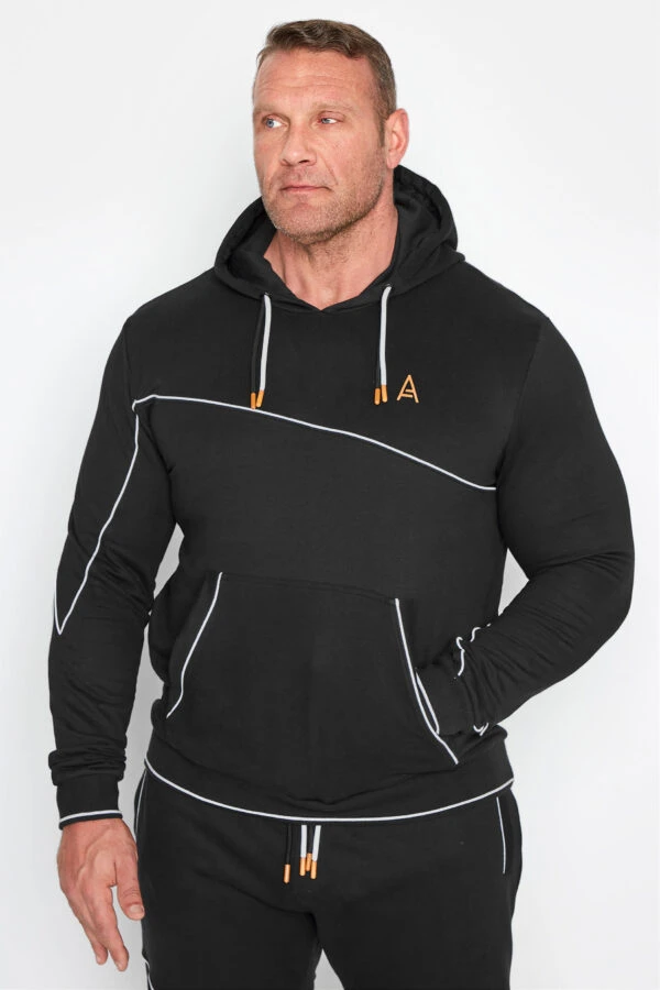 STUDIO A Big & Tall Black Piped Cut & Sew Hoodie